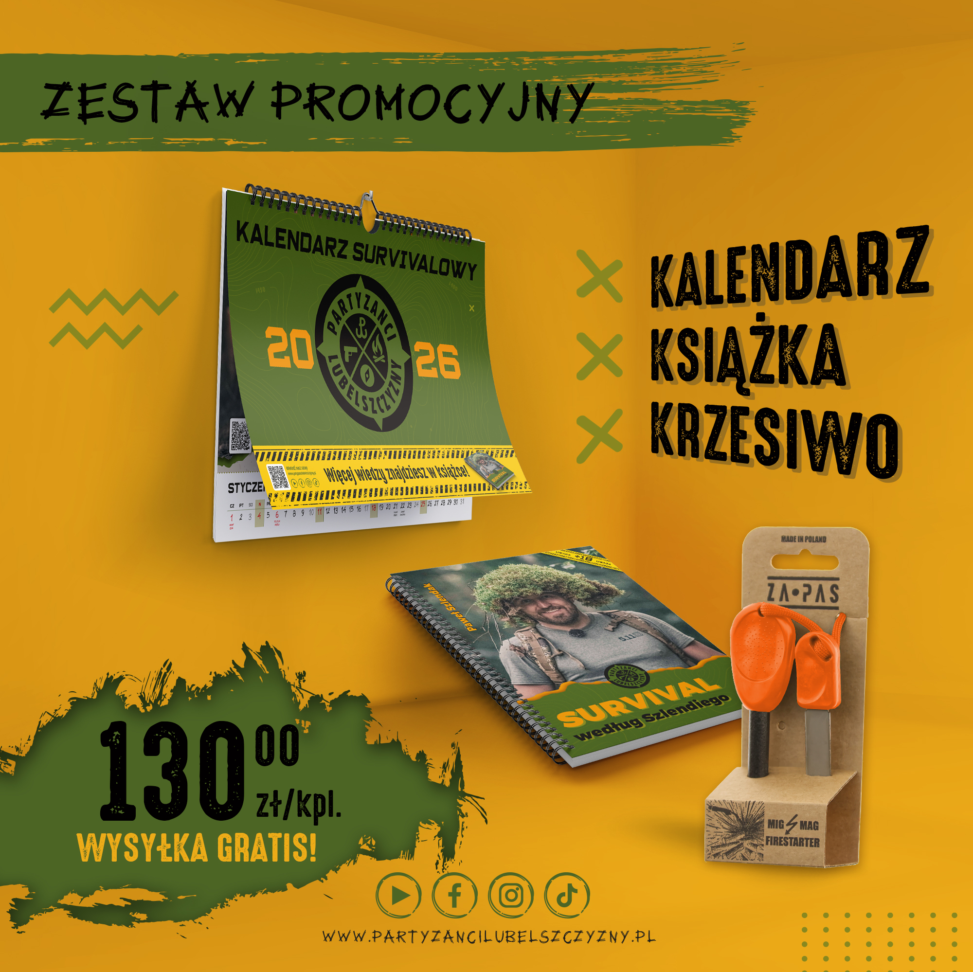 KALENDARZ 2026 + KSIĄŻKA „Survival według Szlendiego” i krzesiwo MIG-MAG